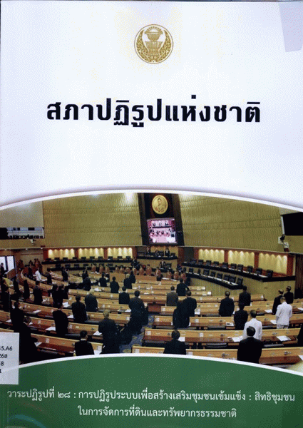สภาปฏิรูปแห่งชาติ วาระปฏิรูปที่ 28 : การปฏิรูประบบเพื่อสร้างเสริมชุมชนเข้มแข็ง : สิทธิชุมชนในการจัดการที่ดินและทรัพยากรธรรมชาติ / สำนักงานเลขาธิการสภาผู้แทนราษฎร ปฏิบัติหน้าที่สำนักงานเลขาธิการสภาปฏิรูปแห่งชาติ.
