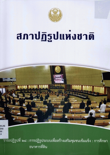 สภาปฏิรูปแห่งชาติ วาระปฏิรูปที่ 28 : การปฏิรูประบบเพื่อสร้างเสริมชุมชนเข้มแข็ง : การศึกษาธนาคารที่ดิน / สำนักงานเลขาธิการสภาผู้แทนราษฎร ปฏิบัติหน้าที่สำนักงานเลขาธิการสภาปฏิรูปแห่งชาติ.