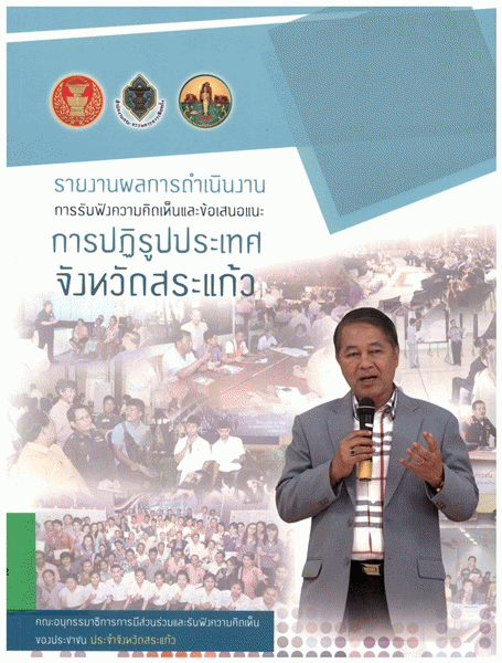 รายงานผลการดำเนินงานการรับฟังความคิดเห็นและข้อเสนอแนะการปฏิรูปประเทศจังหวัดสระแก้ว / คณะอนุกรรมาธิการการมีส่วนร่วมและรับฟังความคิดเห็นของประชาชนประจำจังหวัดสระแก้ว.
