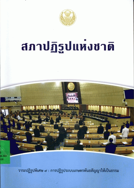 สภาปฏิรูปแห่งชาติ วาระปฏิรูปพิเศษ 9 : การปฏิรูประบบเกษตรพันธสัญญาให้เป็นธรรม / สำนักงานเลขาธิการสภาผู้แทนราษฎร ปฏิบัติหน้าที่สำนักงานเลขาธิการสภาปฏิรูปแห่งชาติ.