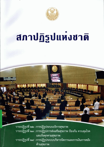 สภาปฏิรูปแห่งชาติ วาระปฏิรูปที่ 22 : การปฏิรูประบบบริหารสุขภาพวาระปฏิรูปที่ 23 : การปฏิรูปการส่งเสริมสุขภาพ ป้องกัน ควบคุมโรค และภัยคุกคามสุขภาพ วาระปฏิรูปที่ 24 : การปฏิรูประบบบริหารจัดการและการเงินการคลังด้านสุขภาพ / สำนักงานเลขาธิการสภาผู้แทนราษฎร ปฏิบัติหน้าที่สำนักงานเลขาธิการสภาปฏิรูปแห่งชาติ.
