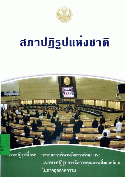สภาปฏิรูปแห่งชาติ วาระปฏิรูปที่ 25 : ระบบการบริหารจัดการทรัพยากร : แนวทางปฏิรูปการจัดการคุณภาพสิ่งแวดล้อมในภาคอุตสาหกรรม / สำนักงานเลขาธิการสภาผู้แทนราษฎร ปฏิบัติหน้าที่สำนักงานเลขาธิการสภาปฏิรูปแห่งชาติ.