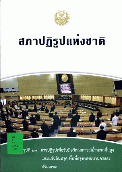 สภาปฏิรูปแห่งชาติ วาระปฏิรูปที่ 27 : การปฏิรูปเพื่อรับมือวิกฤตการณ์น้ำทะเลขึ้นสูงและแผ่นดินทรุดพื้นที่กรุงเทพมหานครและปริมณฑล / สำนักงานเลขาธิการสภาผู้แทนราษฎร ปฏิบัติหน้าที่สำนักงานเลขาธิการสภาปฏิรูปแห่งชาติ.