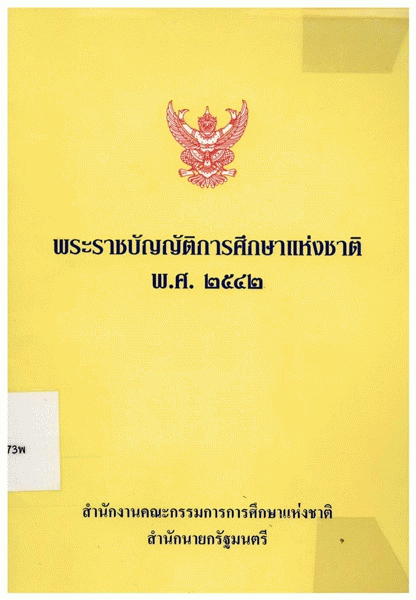 พระราชบัญญัติการศึกษาแห่งชาติ พ.ศ. 2542 / สำนักงานคณะกรรมการการศึกษาแห่งชาติ สำนักนายกรัฐมนตรี.