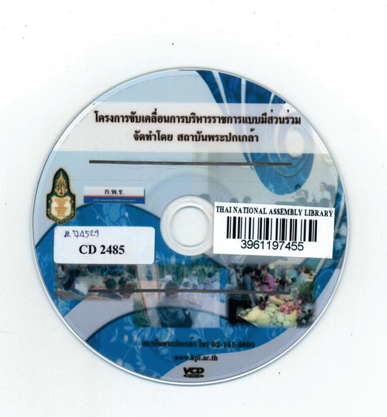 National Assembly Library of Thailand | Audio-Visual Materials collection | Audio-Visual zone | CD 2485 (เรียกดูชั้นหนังสือ(เปิดด้านล่าง)) | พร้อมให้บริการ | 3961197455 |