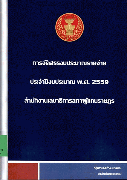 การจัดสรรงบประมาณรายจ่ายประจำปีงบประมาณ พ.ศ. 2559 สำนักงานเลขาธิการสภาผู้แทนราษฎร / สำนักงานเลขาธิการสภาผู้แทนราษฎร.