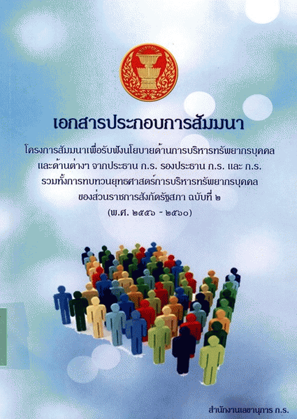 เอกสารประกอบการสัมมนาโครงการสัมมนาเพื่อรับฟังนโยบายด้านการบริหารทรัพยากรบุคคลและด้านต่างๆ จากประธาน ก.ร. รองประธาน ก.ร. และ ก.ร. รวมทั้งการทบทวนยุทธศาสตร์การบริหารทรัพยากรบุคคลของส่วนราชการสังกัดรัฐสภา ฉบับที่ 2 (พ.ศ. 2556-2560) / สำนักงานเลขาธิการสภาผู้แทนราษฎร.
