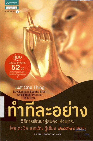 ทำทีละอย่าง : วิธีการพัฒนาสู่สมองแห่งพุทธะ = Just one thing: developing a Buddha brain one simple practice at a time / ริค แฮนสัน, เขียน ; ณัชร สยามวาลา, แปล.