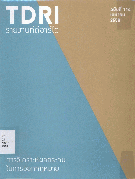 การวิเคราะห์ผลกระทบในการออกกฎหมาย (รายงานทีดีอาร์ไอ ฉบับที่ 114 เมษายน 2558) / วีรวัลย์ ไพบูลย์จิตต์อารี.