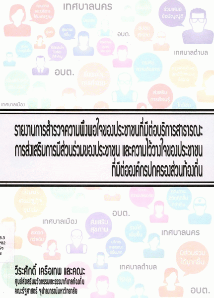 รายงานการสำรวจความพึงพอใจของประชาชนที่มีต่อบริการสาธารณะ การส่งเสริมการมีส่วนร่วมของประชาชน และความไว้วางใจของประชาชนที่มีต่อองค์กรปกครองส่วนท้องถิ่น / วีระศักดิ์ เครือเทพ... [และคนอื่น ๆ].