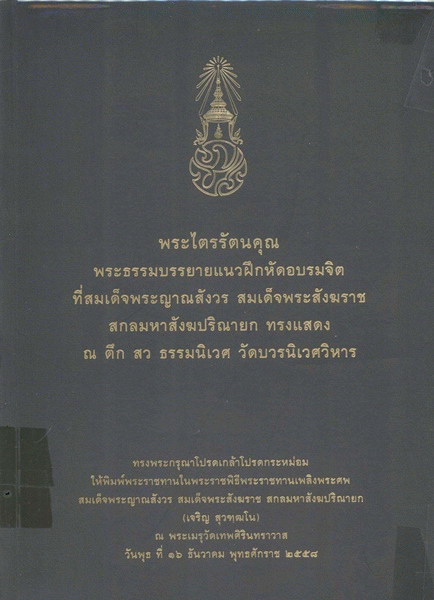 พระไตรรัตนคุณ พระธรรมบรรยายแนวฝึกหัดอบรมจิตที่สมเด็จพระญาณสังวร สมเด็จพระสังฆราช สกลมหาสังฆปริณายก ทรงแสดง ณ ตึก สว ธรรมนิเวศ วัดบวรนิเวศวิหาร / สมเด็จพระญาณสังวร สมเด็จพระสังฆราช สกลมหาสังฆปริณายก