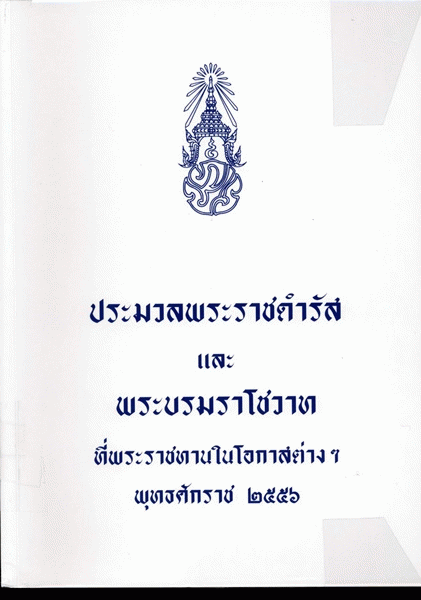 ประมวลพระราชดำรัสและพระบรมราโชวาทที่พระราชทานในโอกาสต่าง ๆ พุทธศักราช 2556 / สำนักราชเลขาธิการ.