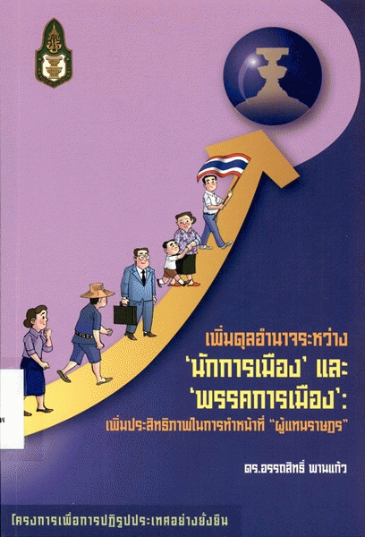 เพิ่มดุลอำนาจระหว่าง 'นักการเมือง' และ 'พรรคการเมือง' : เพิ่มประสิทธิภาพในการทำหน้าที่ "สภาผู้แทนราษฎร" / อรรถสิทธิ์ พานแก้ว.