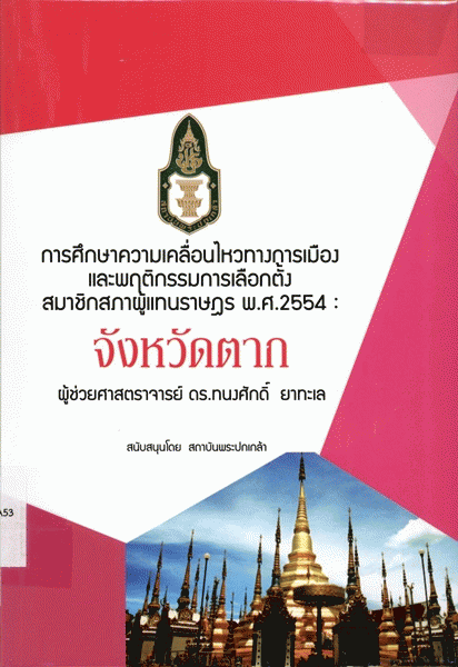 การศึกษาความเคลื่อนไหวทางการเมืองและพฤติกรรมการเลือกตั้งสมาชิกสภาผู้แทนราษฎร พ.ศ. 2554 : จังหวัดตาก / ทนงศักดิ์ ยาทะเล.