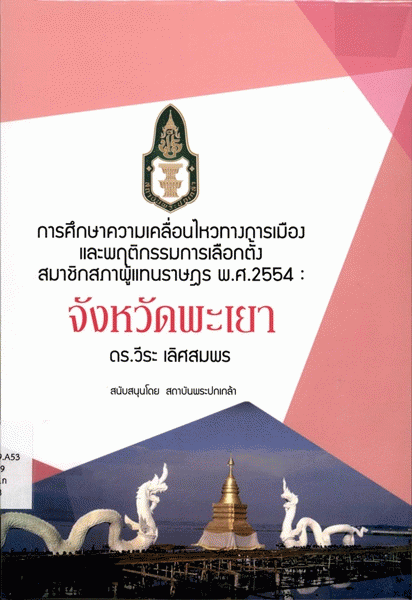 การศึกษาความเคลื่อนไหวทางการเมืองและพฤติกรรมการเลือกตั้งสมาชิกสภาผู้แทนราษฎร พ.ศ. 2554 : จังหวัดพะเยา / วีระ เลิศสมพร.