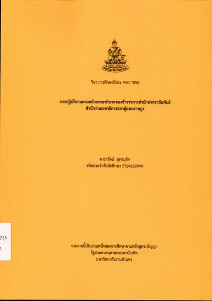 การปฏิบัติงานตามหลักธรรมาภิบาลของข้าราชการสำนักประชาสัมพันธ์ สำนักงานเลขาธิการสภาผู้แทนราษฎร / ดารารัตน์ สุทธมุสิก.