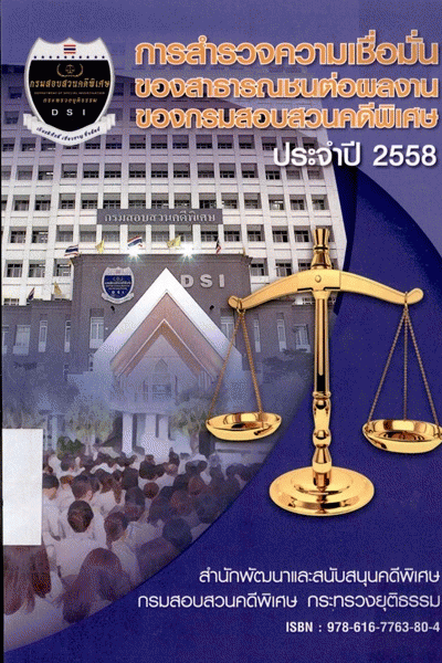 การสำรวจความเชื่อมั่นของสาธารณชนต่อผลงานของกรมสอบสวนคดีพิเศษ ประจำปี 2558 / วัชรา ไชยสาร.