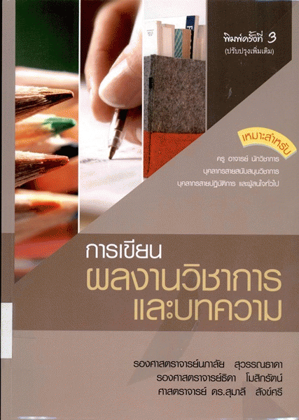 การเขียนผลงานวิชาการและบทความ / นภาลัย สุวรรณธาดา, ธิดา โมสิกรัตน์, สุมาลี สังข์ศรี.