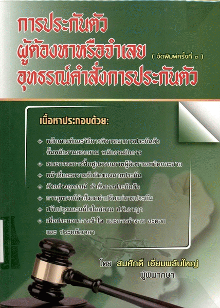 การประกันตัวผู้ต้องหาหรือจำเลย / สมศักดิ์ เอี่ยมพลับใหญ่.