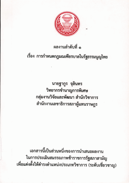 การกำหนดกฎมณเฑียรบาลในรัฐธรรมนูญไทย / ฐากูร จุลินทร.
