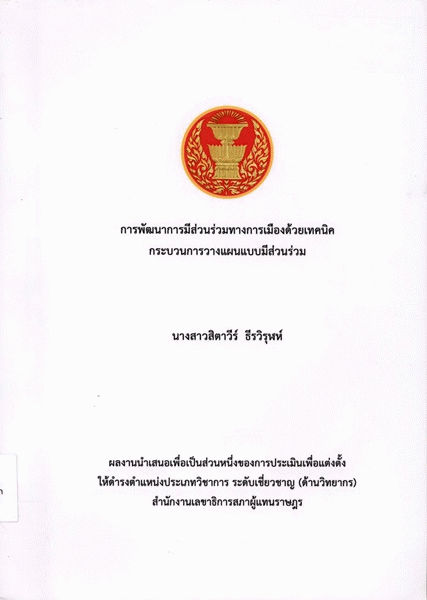 การพัฒนาการมีส่วนร่วมทางการเมืองด้วยเทคนิคกระบวนการวางแผนแบบมีส่วนร่วม / สิตาวีร์ ธีรวิรุฬห์.