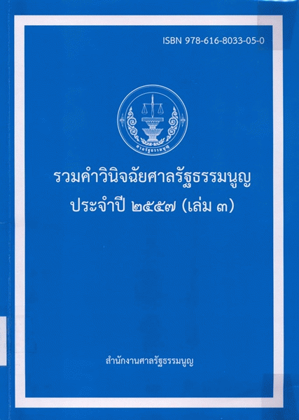 รวมคำวินิจฉัยศาลรัฐธรรมนูญ ประจำปี 2557 (เล่ม 3) / สำนักงานศาลรัฐธรรมนูญ.