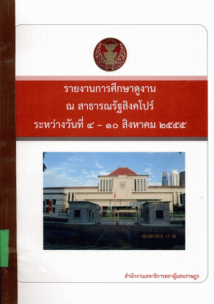 รายงานการศึกษาดูงาน ณ สาธารณรัฐสิงคโปร์ ระหว่างวันที่ 4 - 10 สิงหาคม 2555 / สำนักงานเลขาธิการสภาผู้แทนราษฎร.
