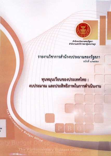 ทุนหมุนเวียนของประเทศไทย : งบประมาณ และประสิทธิภาพในการดำเนินงาน (รายงานวิชาการสำนักงบประมาณของรัฐสภา ฉบับที่ 1/2559) / สำนักงบประมาณของรัฐสภา สำนักงานเลขาธิการสภาผู้แทนราษฎร.