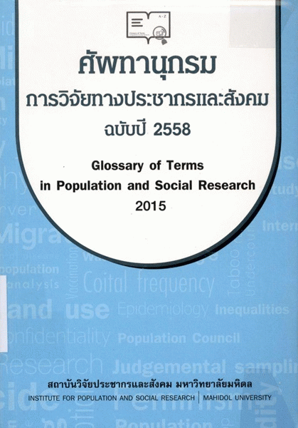 ศัพท์ทานุกรมการวิจัยทางประชากรและสังคมฉบับปี 2558 = Glossary of terms in population and social research 2015 / สถาบันวิจัยประชากรและสังคม มหาวิทยาลัยมหิดล.