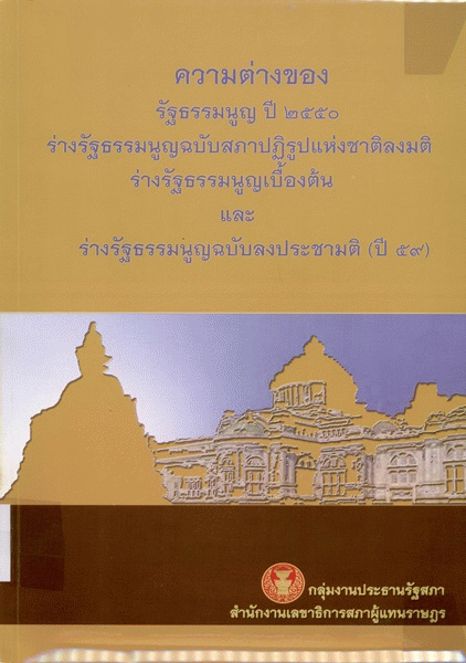 ความต่างของรัฐธรรมนูญ ปี 2550 ร่างรัฐธรรมนูญฉบับสภาปฏิรูปแห่งชาติลงมติ ร่างรัฐธรรมนูญเบื้องต้น และร่างรัฐธรรมนูญฉบับลงประชามติ (ปี 59) / นาถะ ดวงวิชัย.
