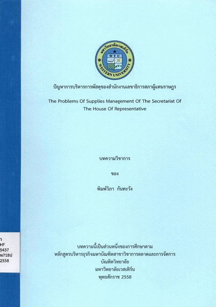 ปัญหาการบริหารการพัสดุของสำนักงานเลขาธิการสภาผู้แทนราษฎร / พิมพ์วิภา กันทะวัง.
