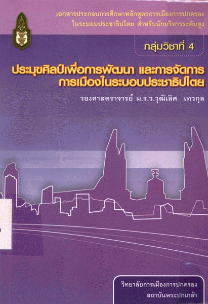 เอกสารประกอบการศึกษาหลักสูตรการเมืองการปกครองในระบอบประชาธิปไตยสำหรับนักบริหารระดับสูง กลุ่มวิชาที่ 4 : ประมุขศิลป์เพื่อการพัฒนา และการจัดการการเมืองในระบอบประชาธิปไตย / ม.ร.ว. วุฒิเลิศ เทวกุล.