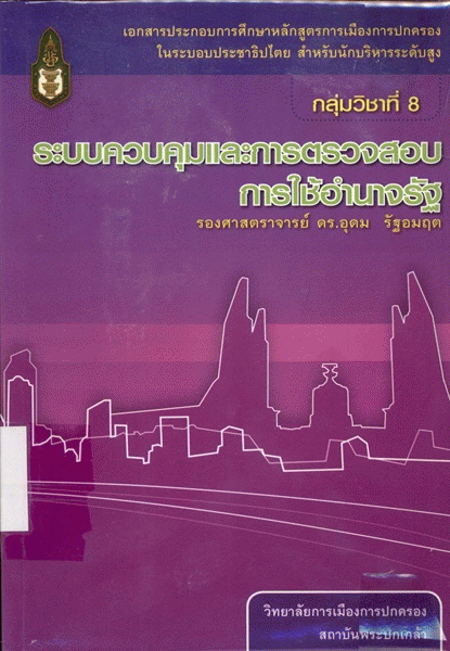 เอกสารประกอบการศึกษาหลักสูตรการเมืองการปกครองในระบอบประชาธิปไตยสำหรับนักบริหารระดับสูง กลุ่มวิชาที่ 8 : ระบบควบคุมและการตรวจสอบการใช้อำนาจรัฐ / อุดม รัฐอมฤต.
