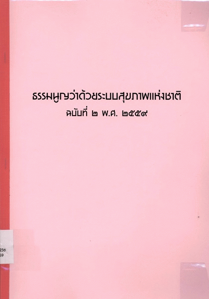 ธรรมนูญว่าด้วยระบบสุขภาพแห่งชาติ ฉบับที่ 2 พ.ศ. 2559 / สำนักงานคณะกรรมการสุขภาพแห่งชาติ.