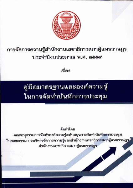 คู่มือมาตรฐานและองค์ความรู้ในการจัดทำบันทึกการประชุม : การจัดการความรู้สำนักงานเลขาธิการสภาผู้แทนราษฎร ประจำปีงบประมาณ พ.ศ. 2559 / คณะกรรมการบริหารจัดการความรู้สนับสนุนการร่างรัฐธรรมนูญในคณะกรรมการบริหารจัดการความรู้ของสำนักงานเลขาธิการสภาผู้แทนราษฎร.