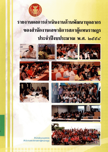 รายงานผลการดำเนินงานด้านพัฒนาบุคลากรของสำนักงานเลขาธิการสภาผู้แทนราษฎร ประจำปีงบประมาณ พ.ศ. 2558 / สำนักพัฒนาบุคลากร สำนักงานเลขาธิการสภาผู้แทนราษฎร.