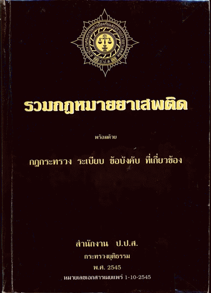 รวมกฎหมายยาเสพติด พร้อมด้วย กฎกระทรวง ระเบียบ ข้อบังคับ ที่เกี่ยวข้อง / สำนักงานคณะกรรมการป้องกันและปราบปรามยาเสพติด กระทรวงยุติธรรม.