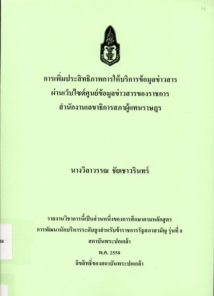 การเพิ่มประสิทธิภาพการให้บริการข้อมูลข่าวสารผ่านเว็บไซต์ศูนย์ข้อมูลข่าวสารของราชการ สำนักงานเลขาธิการสภาผู้แทนราษฎร