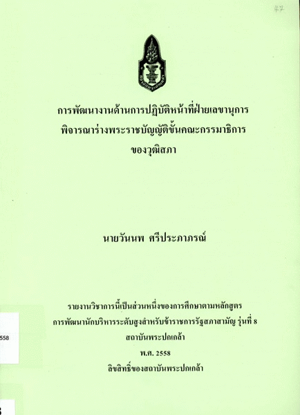การพัฒนางานด้านการปฏิบัติหน้าที่ฝ่ายเลขานุการพิจารณาร่างพระราชบัญญัติขั้นคณะกรรมาธิการของวุฒิสภา