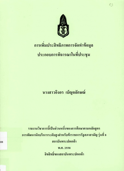 การเพิ่มประสิทธิภาพการจัดทำข้อมูลประกอบการพิจารณาในที่ประชุม