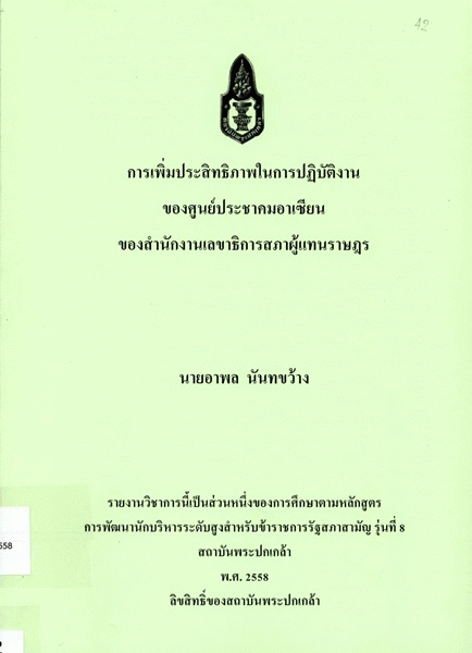 การเพิ่มประสิทธิภาพในการปฏิบัติงานของศูนย์ประชาคมอาเซียนของสำนักงานเลขาธิการสภาผู้แทนราษฎร