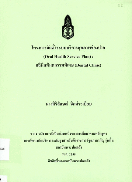 โครงการจัดตั้งระบบบริการสุขภาพช่องปาก (Oral Health Service Plan) : คลินิกทันตกรรมพิเศษ (Dental Clinic)
