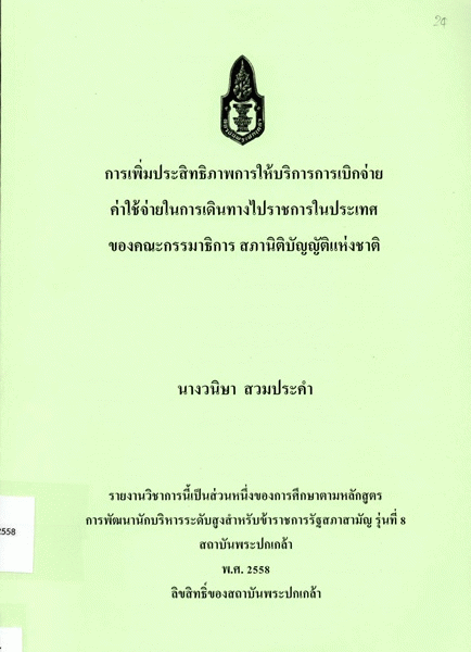 การเพิ่มประสิทธิภาพการให้บริการการเบิกจ่ายค่าใช้จ่ายในการเดินทางไปราชการในประเทศของคณะกรรมาธิการ สภานิติบัญญัติแห่งชาติ