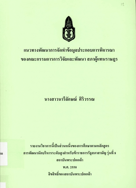แนวทางพัฒนาการจัดทำข้อมูลประกอบการพิจารณาของคณะกรรมการการวิจัยและพัฒนา สภาผู้แทนราษฎร