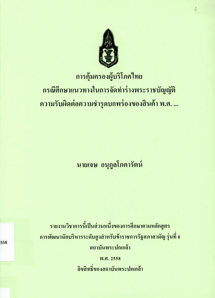 การคุ้มครองผู้บริโภคไทย กรณีศึกษาแนวทางในการจัดทำร่างพระราชบัญญัติความรับผิดต่อความชำรุดบกพร่องของสินค้า พ.ศ. ...