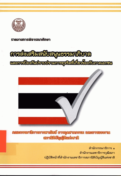 รายงานการพิจารณาศึกษาการส่งเสริมสนับสนุนธรรมาภิบาลและการป้องกันปราบปรามการทุจริตที่เกี่ยวข้องกับภาคเอกชน ของคณะกรรมาธิการการพาณิชย์ การอุตสาหกรรม และการแรงงาน สภานิติบัญญัติแห่งชาติ / สำนักกรรมาธิการ 1 สำนักงานเลขาธิการวุฒิสภาปฏิบัติหน้าที่สำนักงานเลขาธิการสภานิติบัญญัติแห่งชาติ.