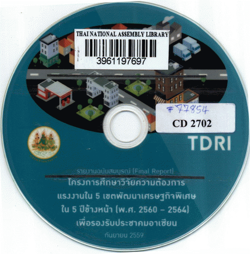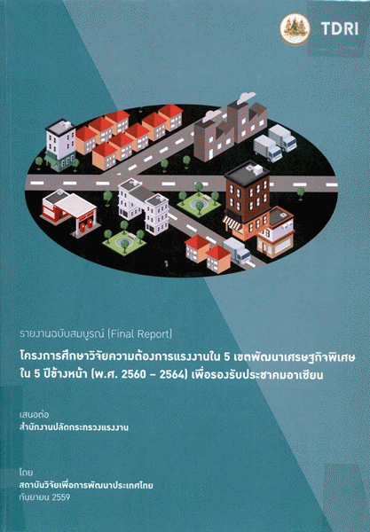 โครงการศึกษาวิจัยความต้องการแรงงานใน 5 เขตพัฒนาเศรษฐกิจพิเศษใน 5 ปีข้างหน้า (พ.ศ. 2560-2564) เพื่อรองรับประชาคมอาเซียน / มูลนิธิสถาบันวิจัยเพื่อการพัฒนาประเทศไทย.
