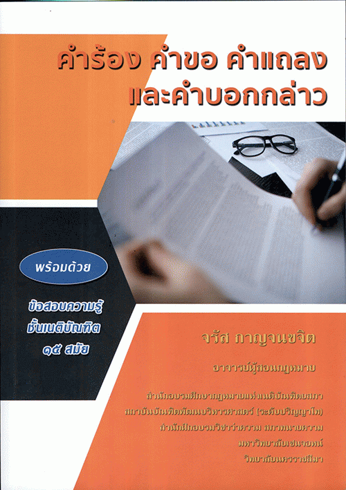 คำร้อง คำขอ คำแถลง และคำบอกกล่าว พร้อมด้วยข้อสอบความรู้ชั้นเนติบัณฑิต 15 สมัย / จรัส กาญจนขจิต.
