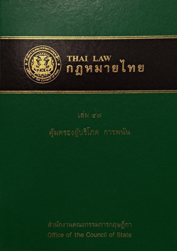 กฎหมายไทย เล่ม 47 คุ้มครองผู้บริโภค การพนัน = Thai law / ผู้จัดทำ กองกฎหมายไทย สำนักงานคณะกรรมการกฤษฎีกา ; บรรณาธิการ นพดล เภรีฤกษ์.
