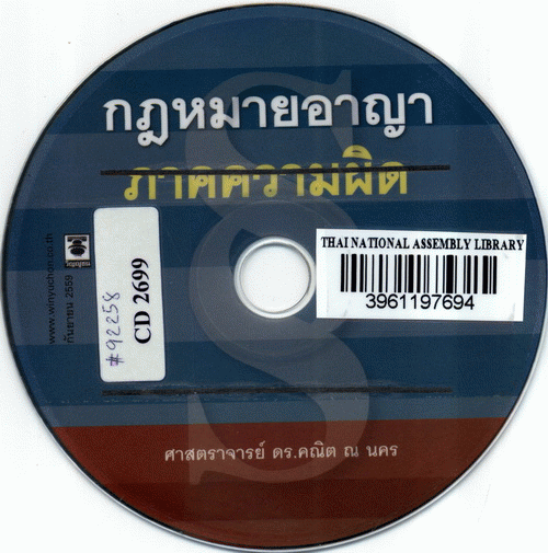 National Assembly Library of Thailand | Audio-Visual Materials collection | Audio-Visual zone | CD 2699 (เรียกดูชั้นหนังสือ(เปิดด้านล่าง)) | พร้อมให้บริการ | 3961197694 | ||